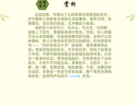 说白了,它就是一句非常直白的描写:风吹过,把高高的草吹弯了,然后,藏在草地里的牛羊就露出来了。是不是超级简单?