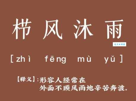 | 沐雨栉风 | 用雨水洗头,用风梳发 | 形容在外奔波劳苦 |